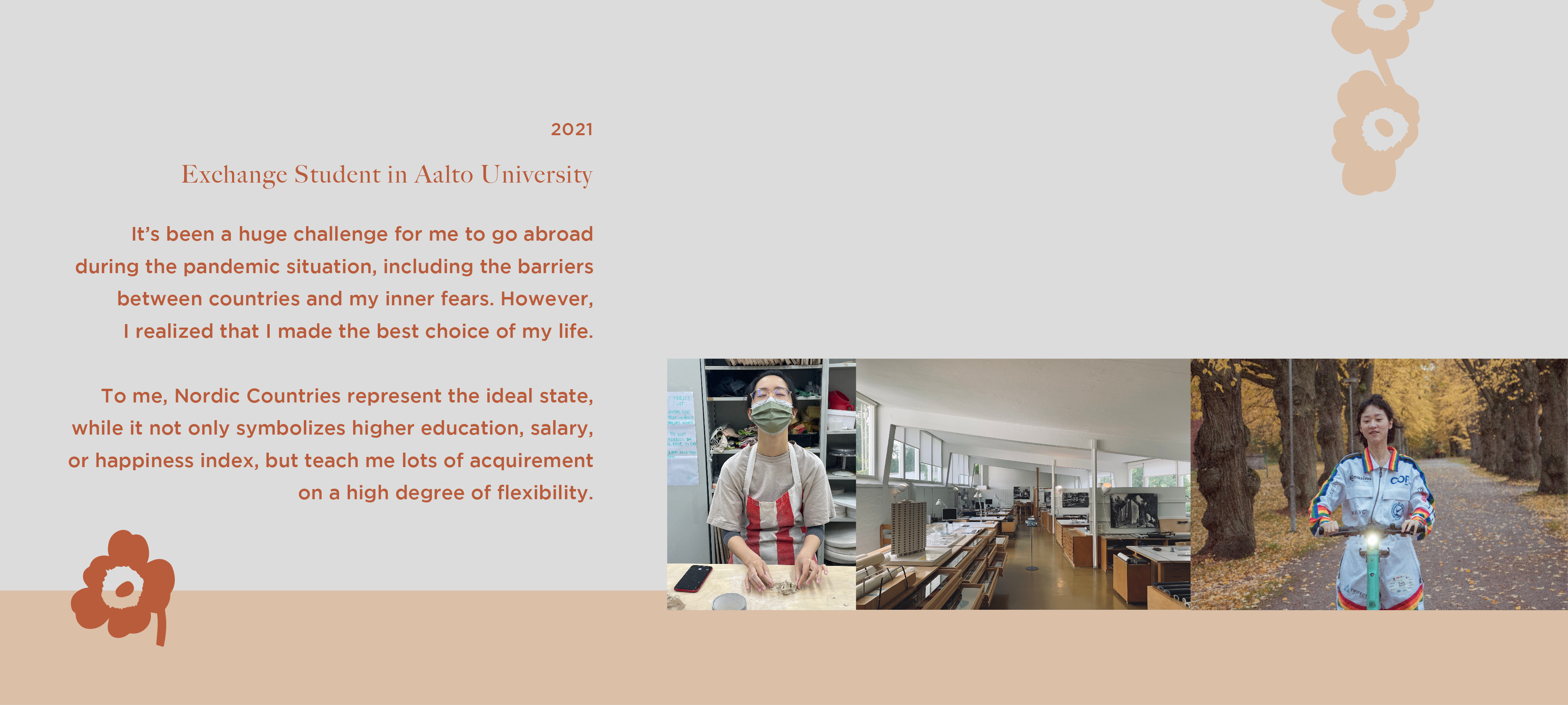 Based on self reflections, the story which Peiya devotes herself into both art and design field.